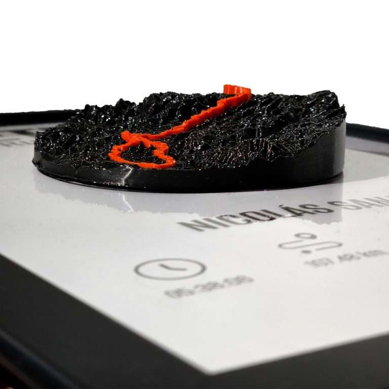 Mi PR es una pieza única diseñada a partir de tu propio recorrido. Tomamos tu ruta ya sea de running, ciclismo, triatlón o cualquier deporte y la convertimos en un mapa 3D con elevación real.
